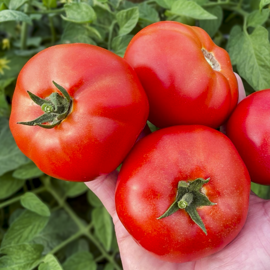 GTO is our exciting contender for the coveted “first early” determinate slicer slot. Hearty plants show strong resistance to disease and produce very heavy yields of medium-large, clustered fruits with great interior color due to the full crimson gene expression. The globe to flattened-globe fruits boast high flavor, particularly against competitors in this slot. GTO is performing particularly well in the Northeast and Mid-Atlantic. Matures 55-60 days from transplant.